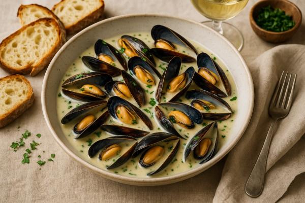 Miesmuscheln in Weißweinsoße